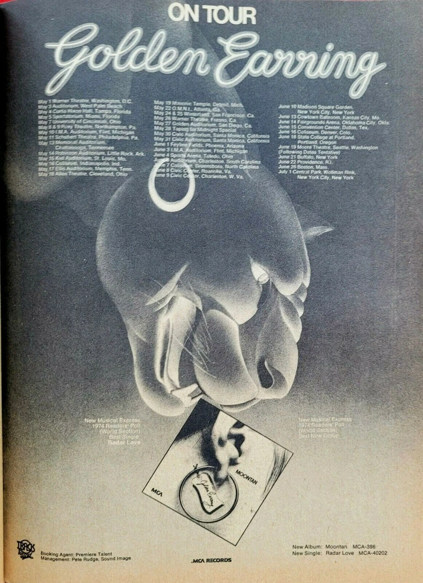 Source : cornellbigred.com1974 GOLDEN EARRING Moontan Album & Tour Schedule Promo Print AD